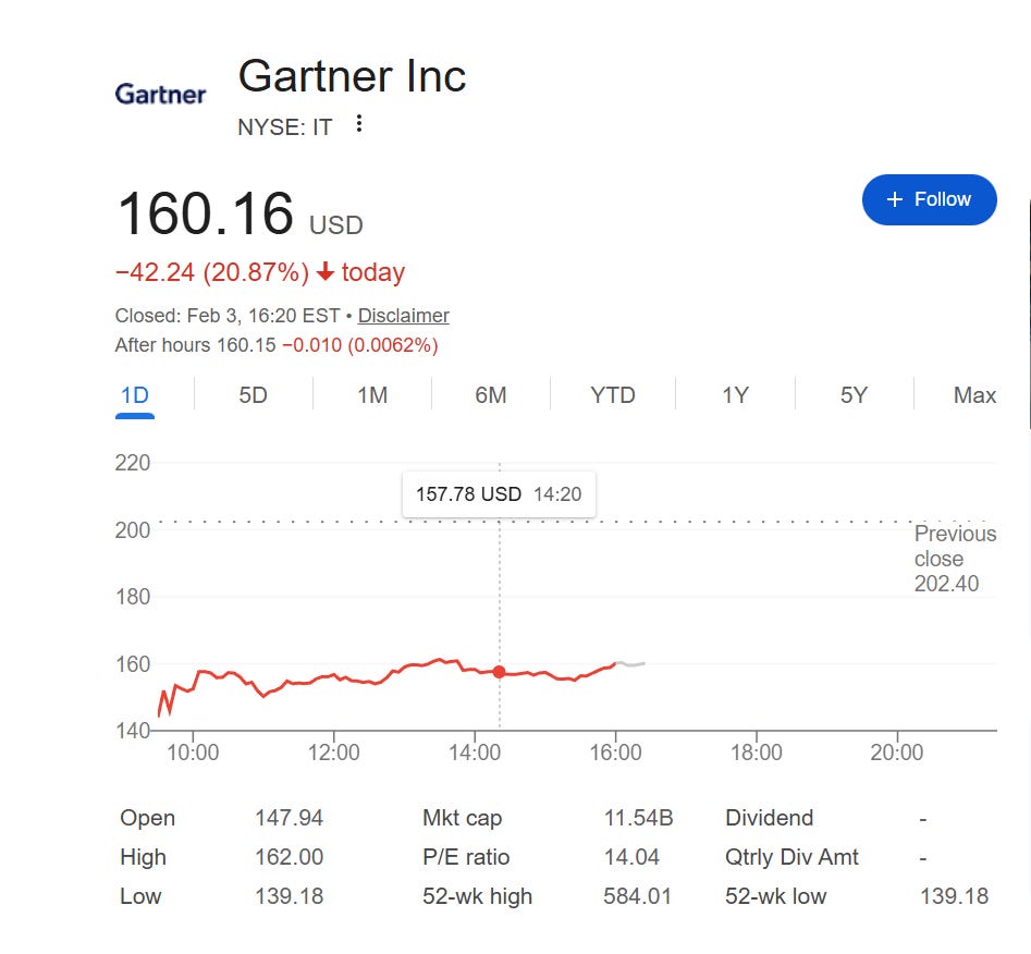 What surprised me was the lack of real coverage that explained what actually happened. Most posts just repeated the headline: “Gartner missed” or “guidance”.