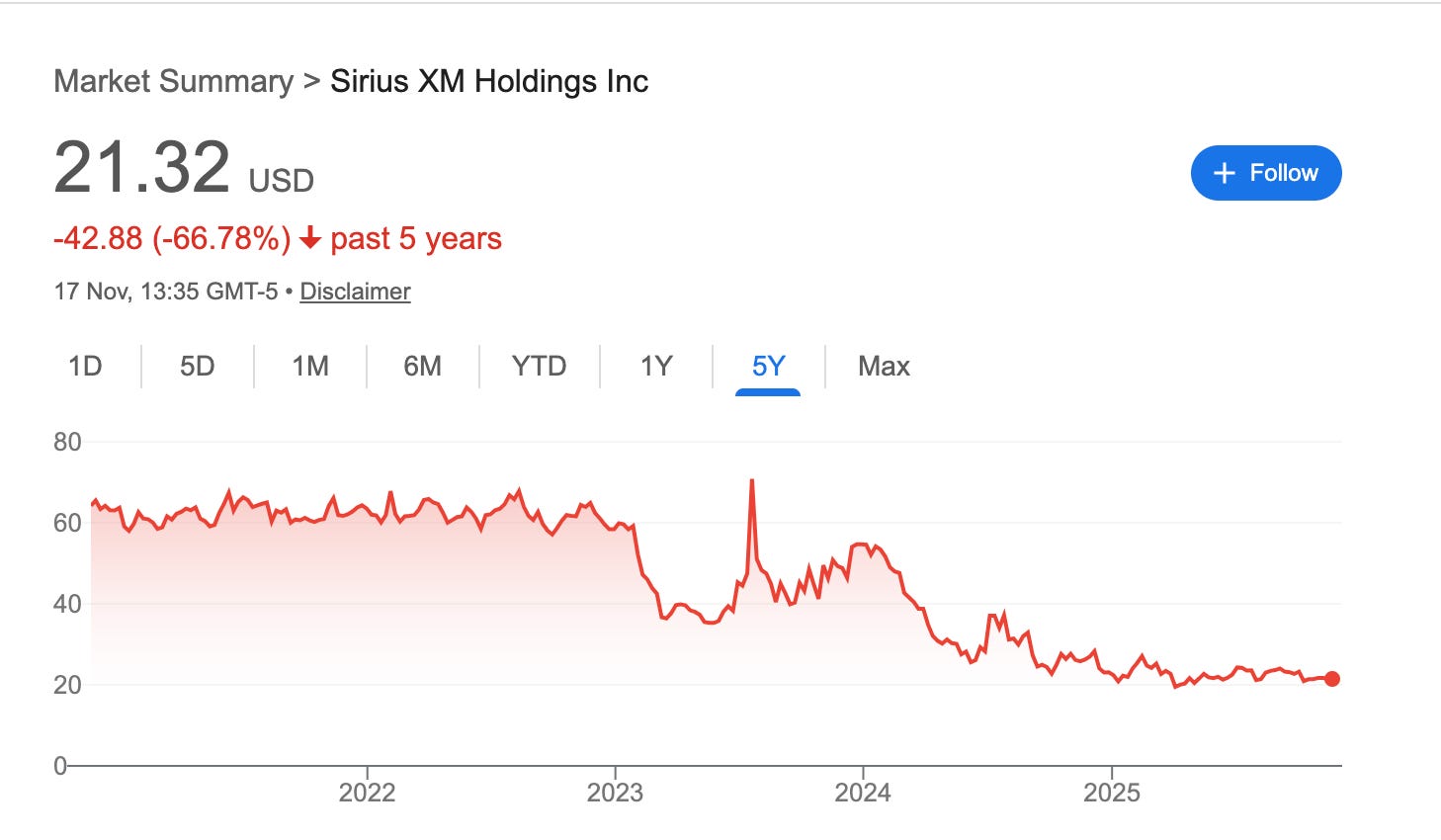 Sirius XM is a mature, slow-moving monopoly on satellite radio
