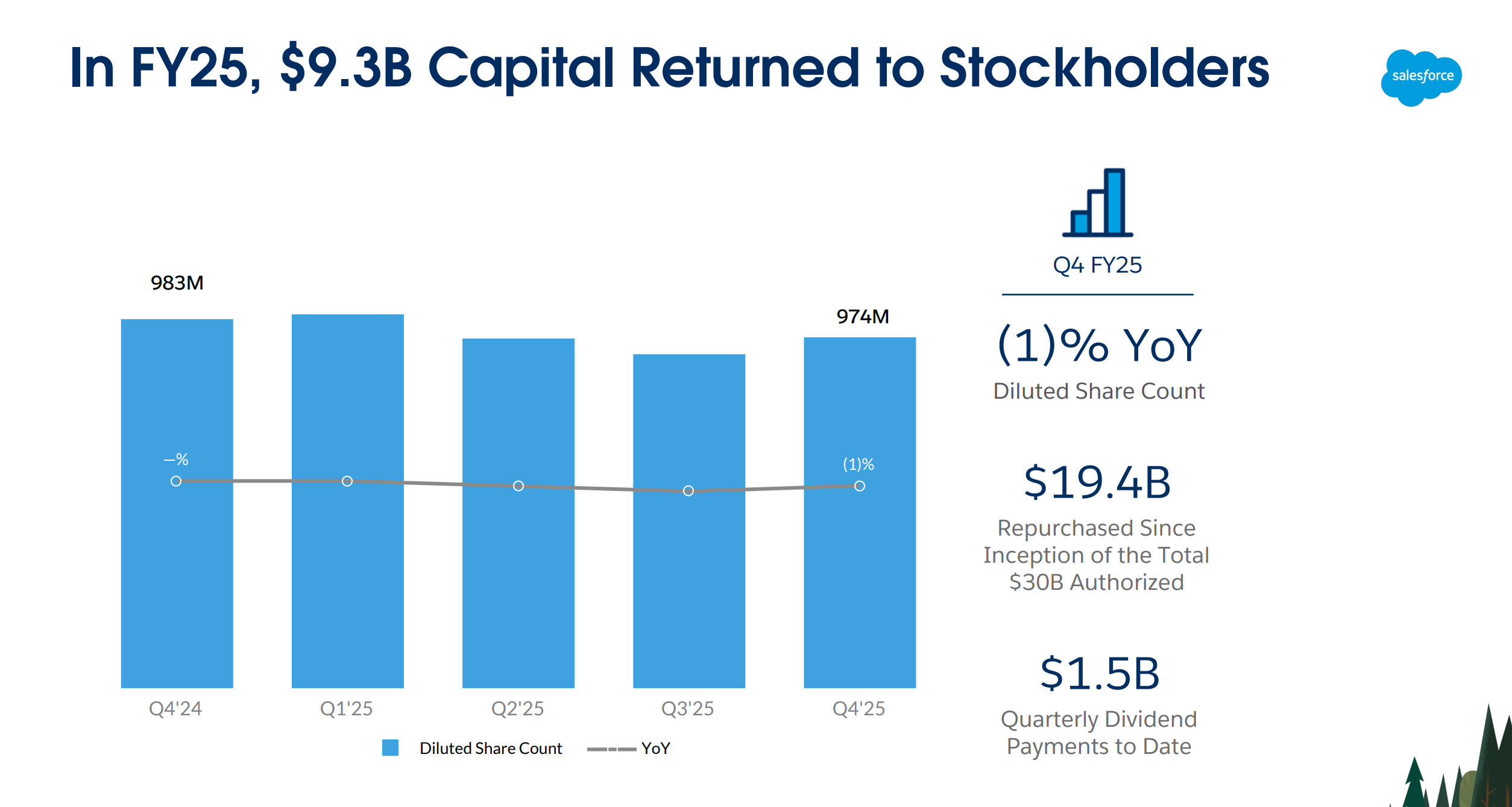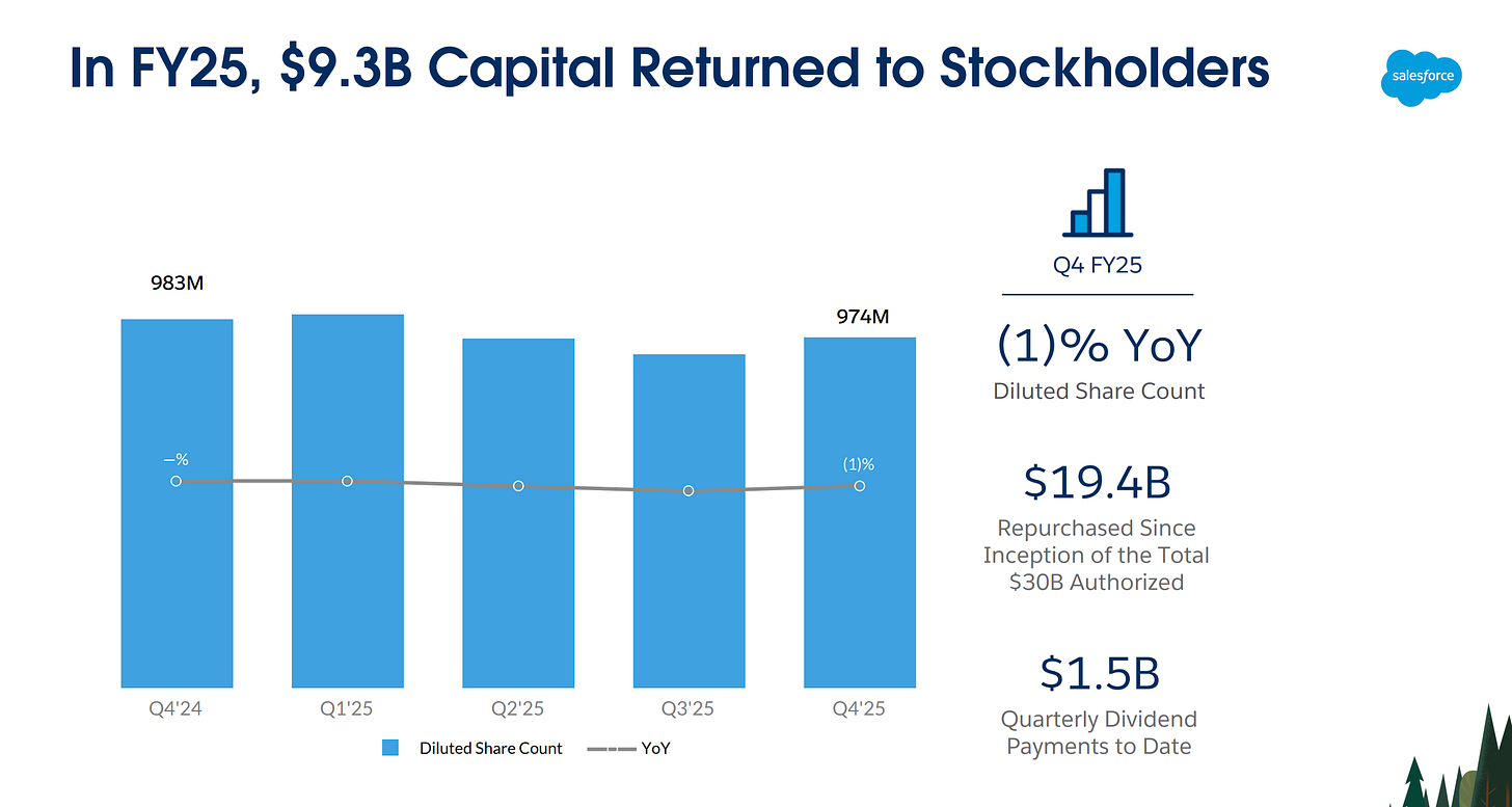 Now Salesforce trades around 13–14x free cash flow. The S&P 500 is closer to 21x. Coca-Cola is around 22x and grows slower. That gap tells you expectations have flipped, the market isn’t paying for the best case anymore. At 14x, Salesforce doesn’t need to prove it can grow at 20% to make sense; it just needs to stay stable, keep customers, and keep converting revenue into cash.