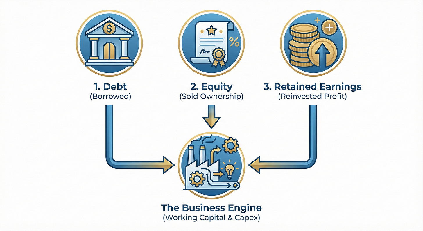 Capital is just the fuel the business needs to operate. It comes basically in three forms: